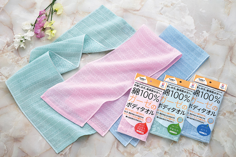 綿100%ガーゼのボディタオル